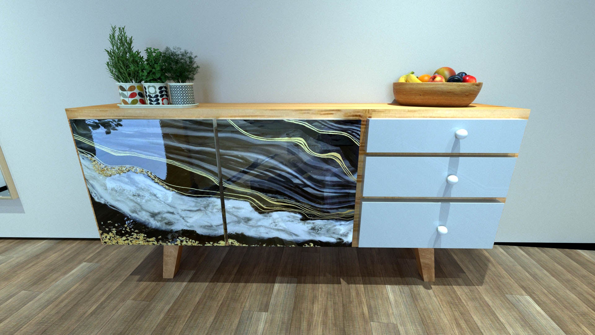 Dining Room Storage Cabinet – Luxury Wood & Black Epoxy Sideboard | Fankaarlok