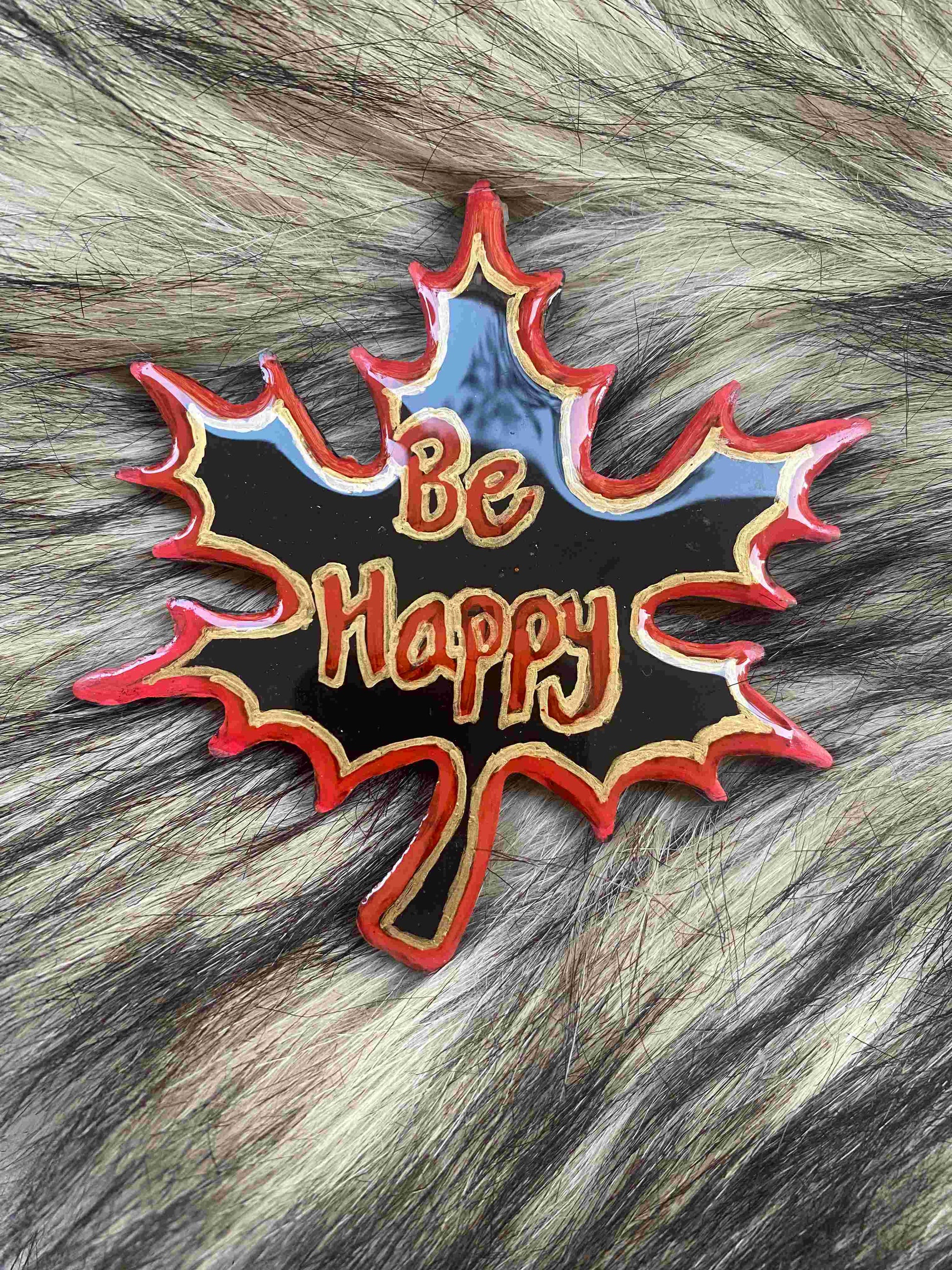 Small Decorative Magnets – “Be Happy” Maple Magnet | Fankaarlok