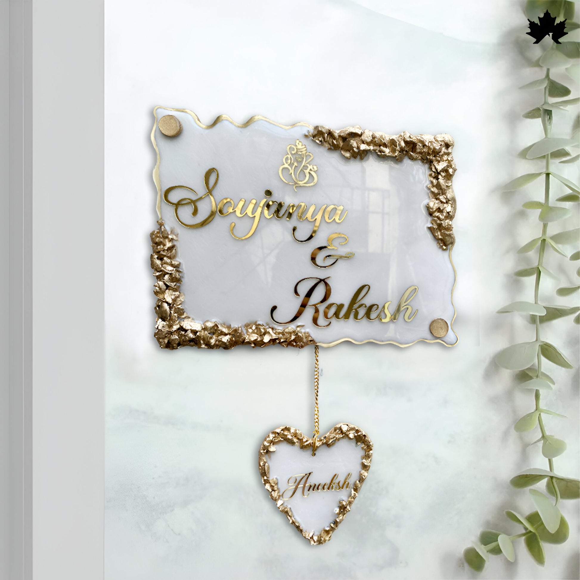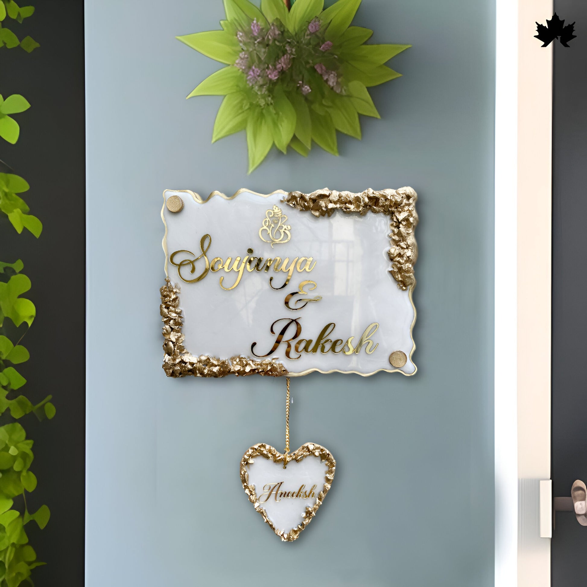 The textured gold borders add richness and depth, giving your entrance a regal and graceful touch. Each piece is meticulously designed, ensuring it complements both contemporary and traditional homes. It’s not just a nameplate; it’s a symbol of togetherness, handcrafted to make every welcome moment special.