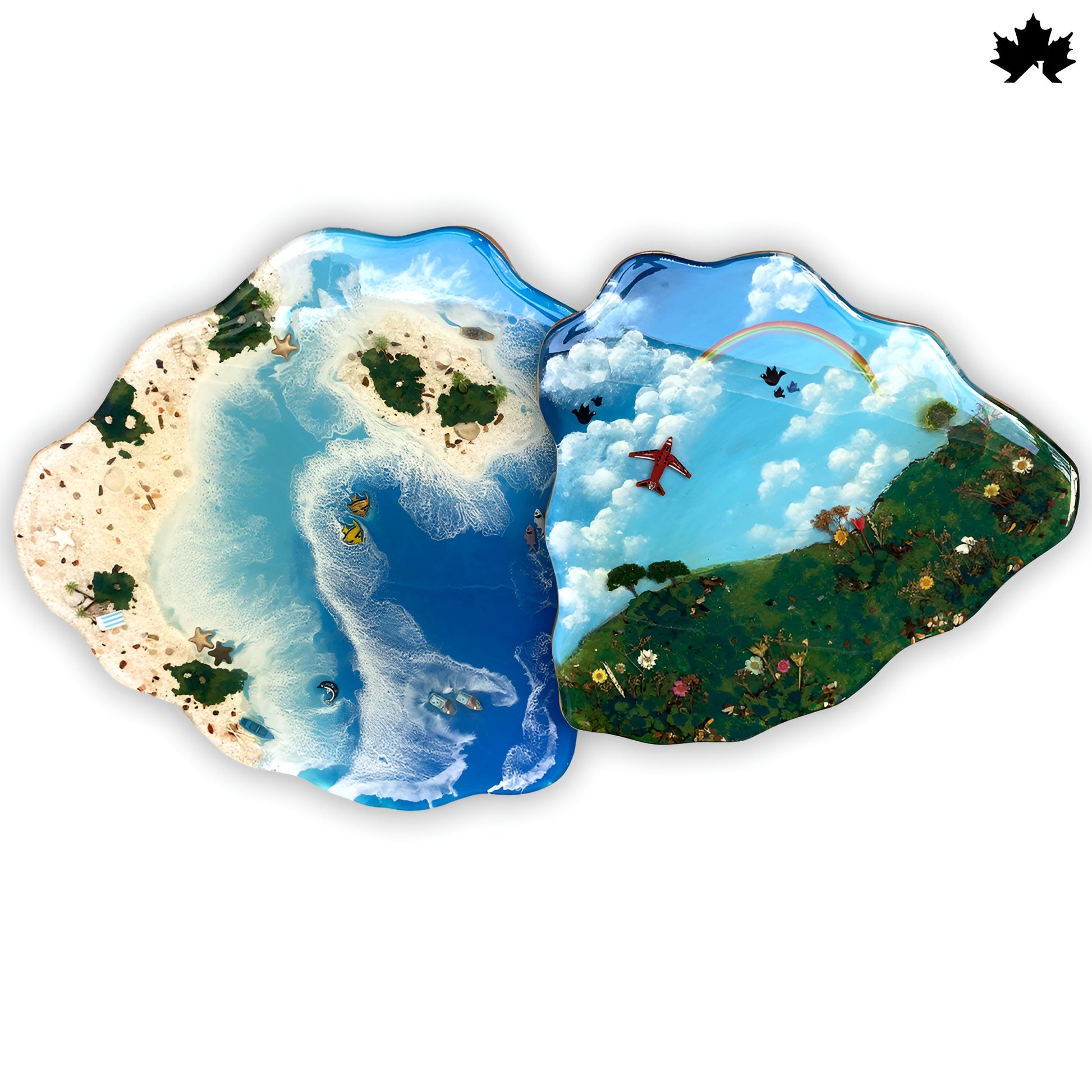 This unique nesting table design brings a breathtaking beachscape right into your living room. Handcrafted with layered epoxy art, it captures scenic sky, ocean waves, sandy shores, and tropical elements with extraordinary detail. A true conversation piece that blends artistic storytelling with functional luxury.